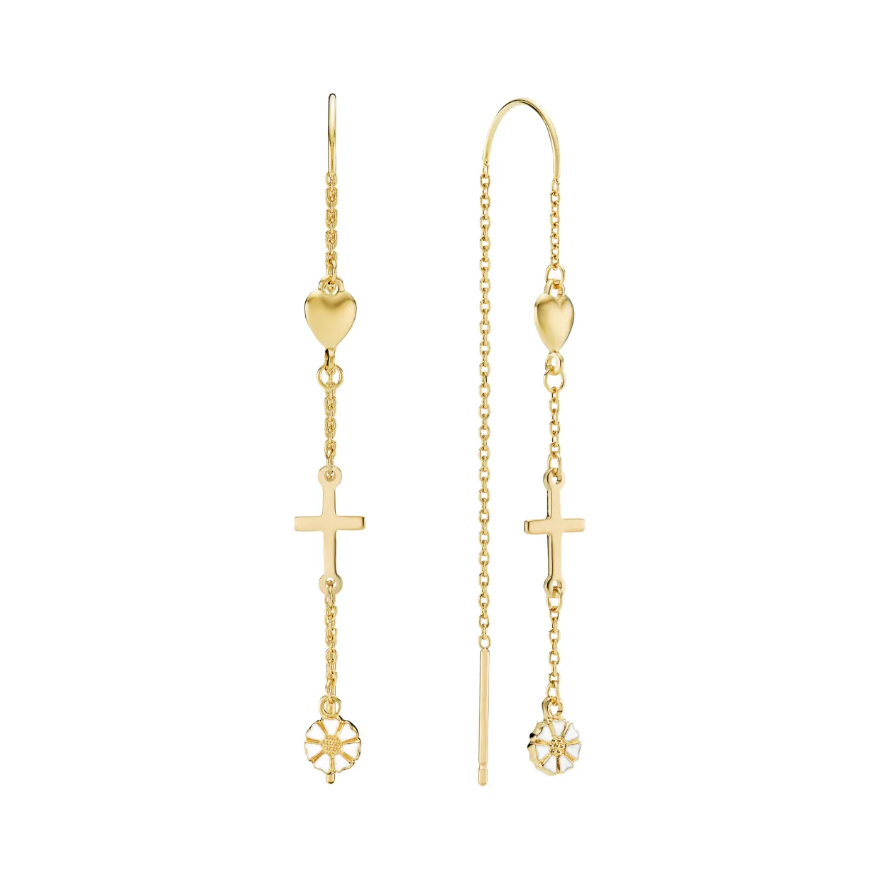 LUND COPENHAGEN ØRERINGE SØLVFORGYLDTE KÆDER MED MARGUERIT OG KORS – 9095055-M