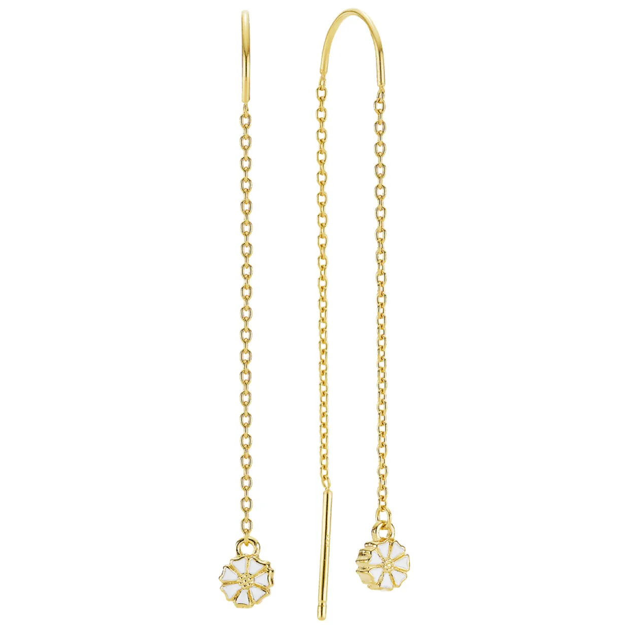 Elegant og let kæde-ørehænger, hvis længde fremhæver halsens linjer. Flot at sætte sammen med flere små margueritter op ad øret.