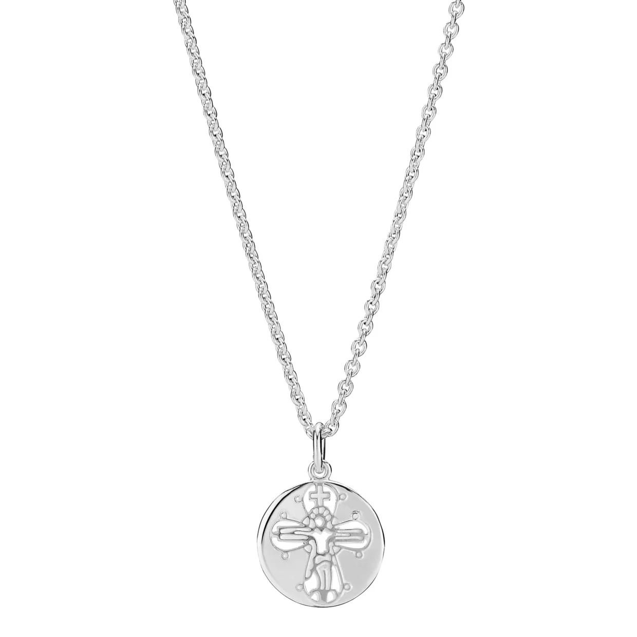 Sød sølv halskæde med dagmarkors skåret i cirklen, til denne halskæde findes tilhørende armbånd