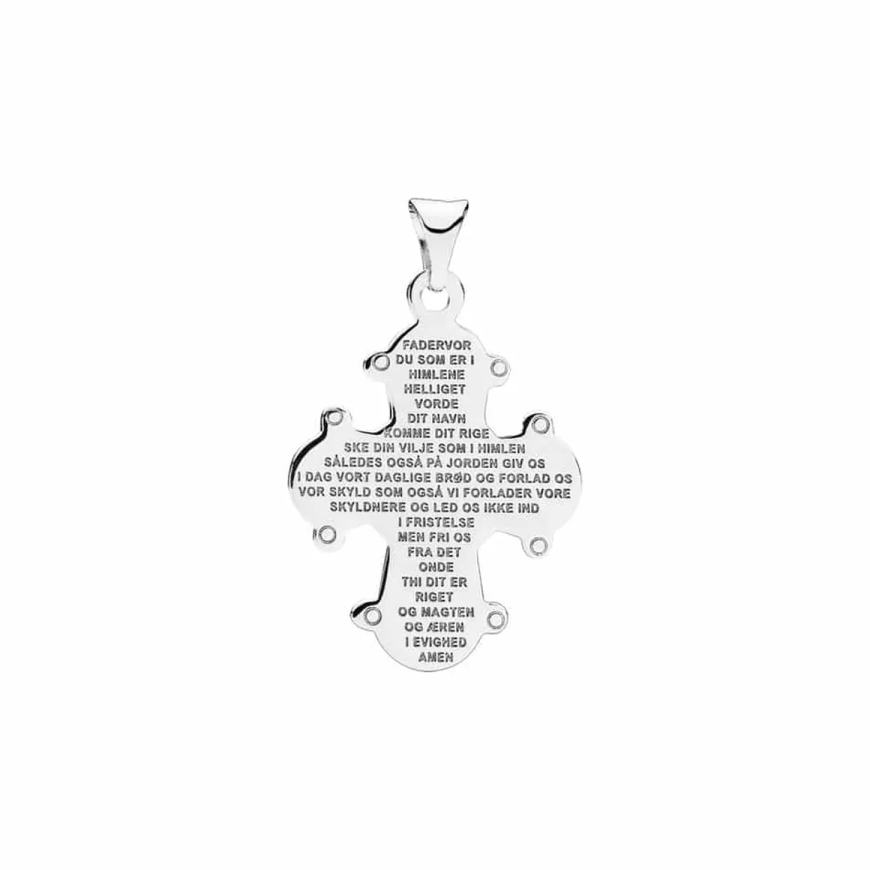 Fint klassisk dagmarkors med laser graveret fadervor på bagsiden.