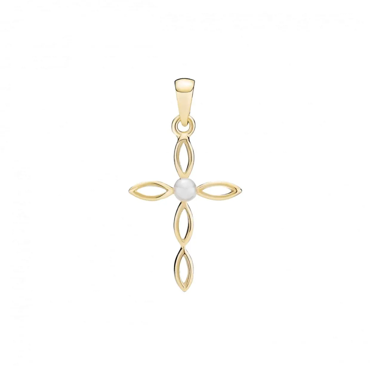 Ferskvandsperlen måler 2,5-3 mm. Korset måler 22×14 mm.