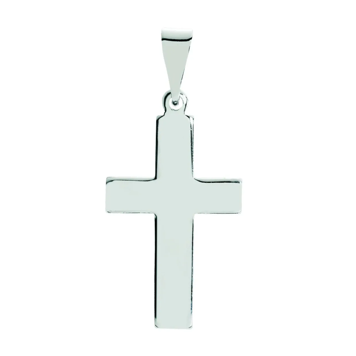 Dette klassiske kors vedhæng er fremstillet i sterling sølv med blank overflade. Korset måler 25 x 16 mm og har fået monteret et flot patz øsken.