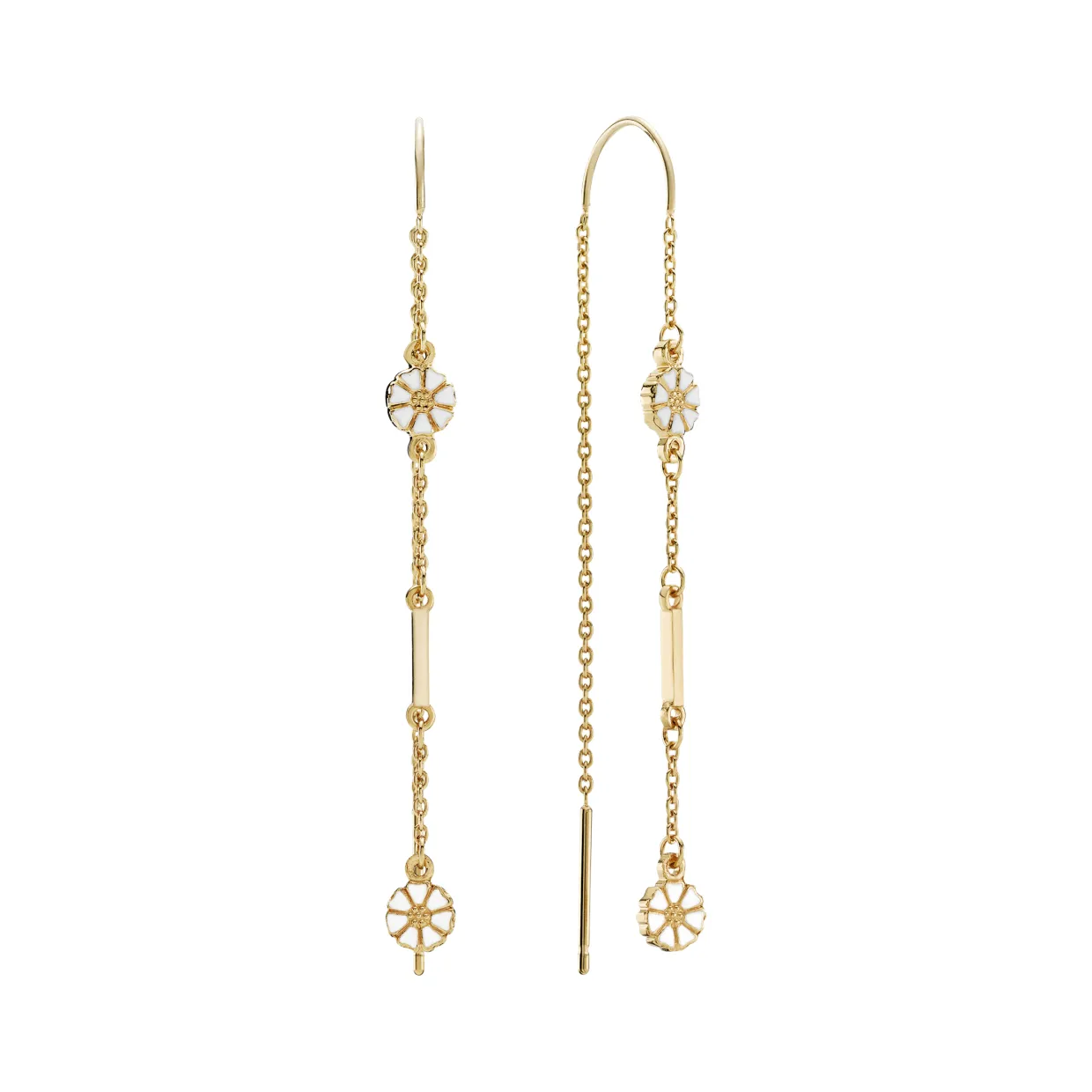 Hver ørering består af kæder med en pind samt 2 x 5 mm margueritter.