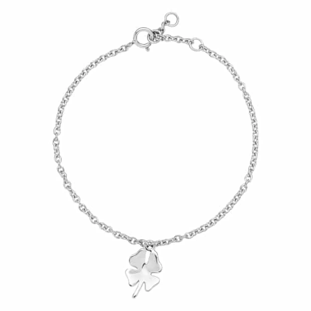 Sølv armbånd med et lille firkløve vedhæng som symboliser held og lykke.