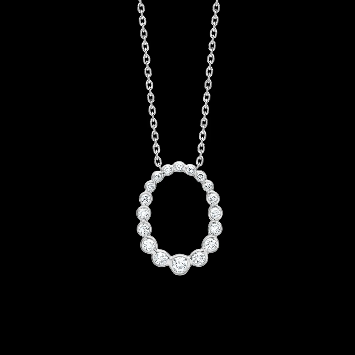 Vedhænget har en længde på 17 mm og selve kæden er 45 cm.