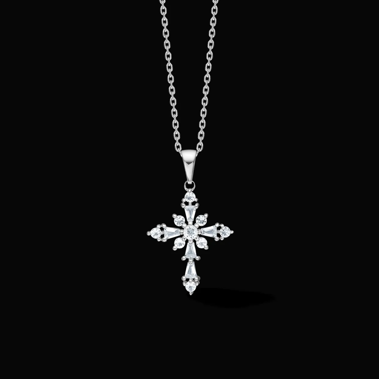Halskæden er udført i rhodineret sterlingsølv, som giver en smuk, blank overflade og beskytter mod anløbning. De hvide topaser tilfører et let og strålende spil i lyset, der fremhæver designets elegante linjer. Resultatet er et tidløst smykke, som både kan bæres til hverdag og til særlige lejligheder.