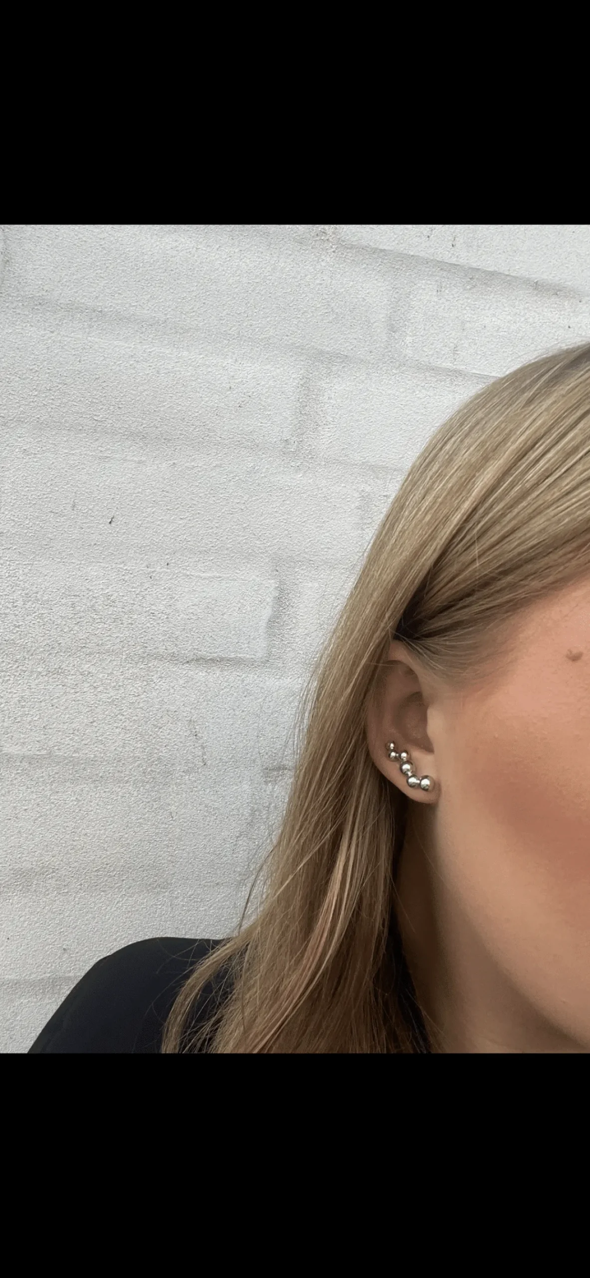 EMBEDDED BALL sølvøreringe på bøjle. Øreringen kan sættes, så den snor sig op ad øret eller hængende ned som en ørehænger.