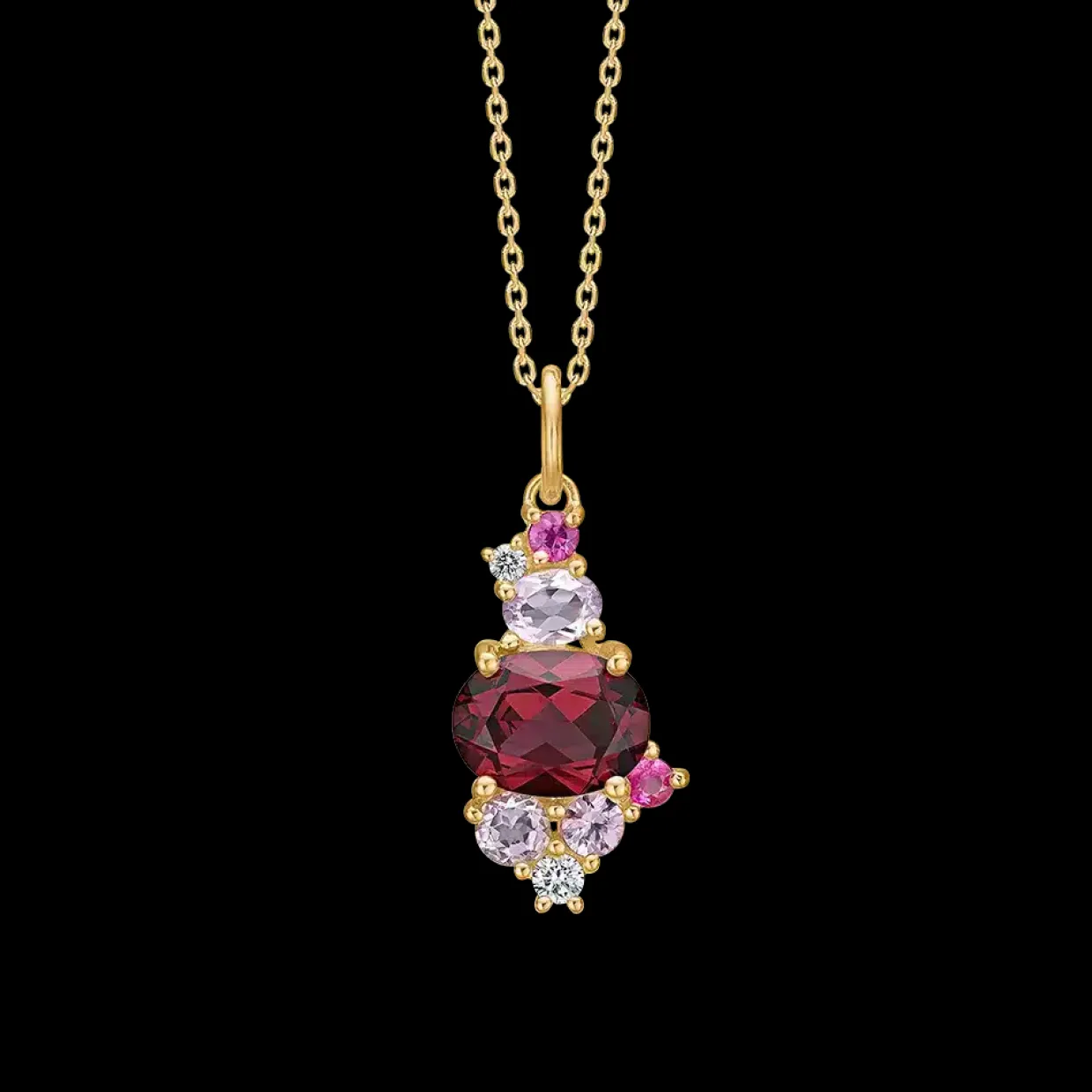 Smukt vedhæng fra Mads Z Gold Label i forårets smukkeste farver med 0,055 brillant og diamant og ægte sten: ametyst, light swiss blue topas, London blue topas, pink Turmalin og pink safir. Der medfølger en sølv forgyldt kæde. Guldkæde kan tilkøbes.