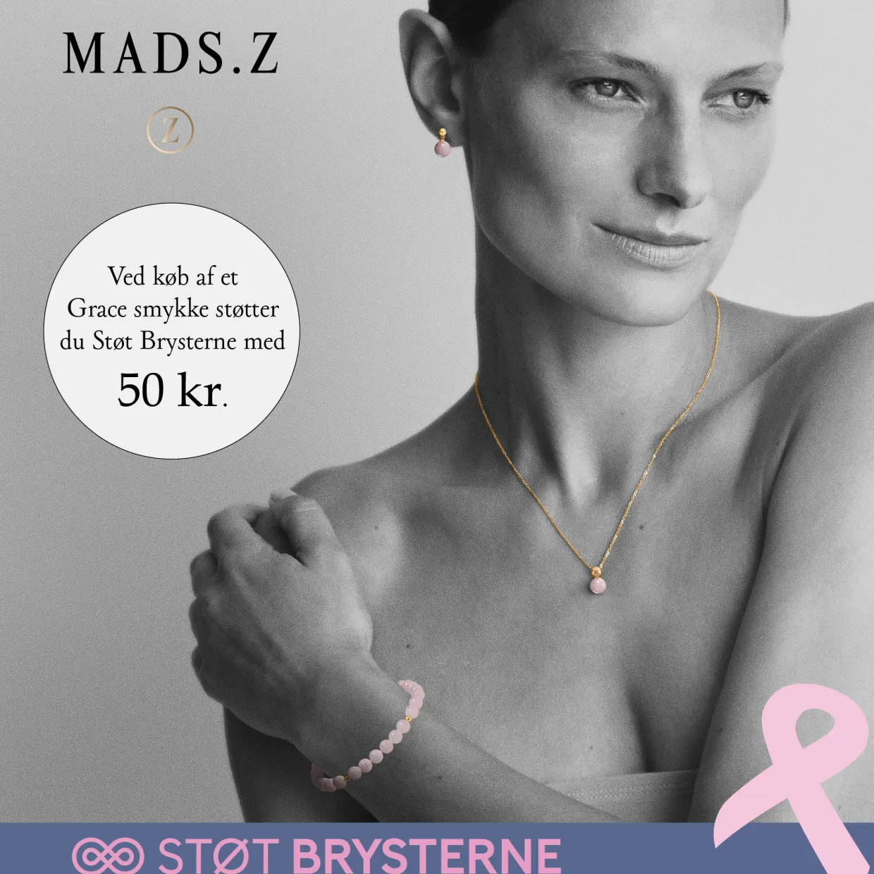 Ved køb af GRACE armbåndet støttet du med 50 kr. til Støt Brysterne og støtter dermed en vigtig sag i kampen mod brystkræft.