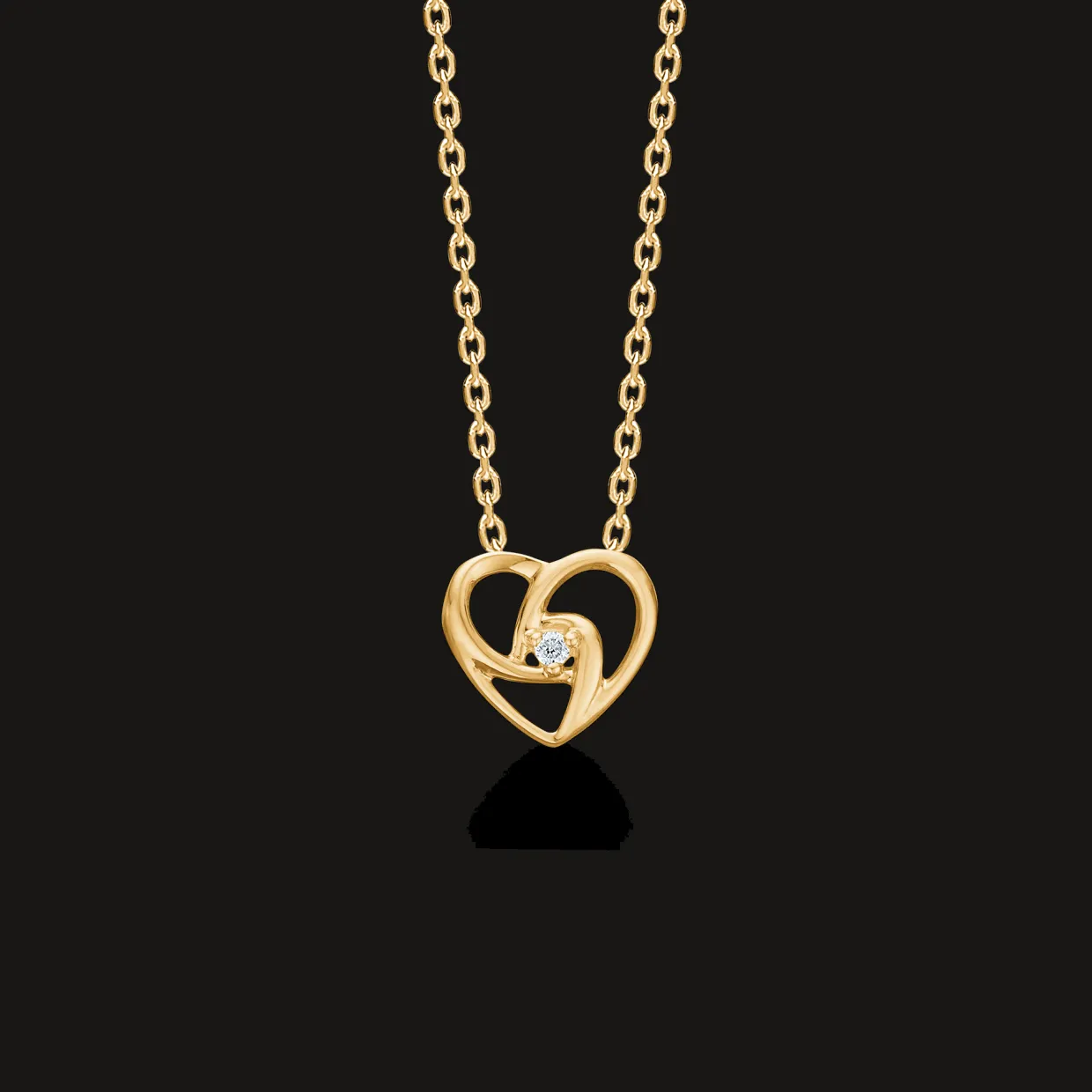 Det bløde hjerteformede design kombinerer klassisk elegance med moderne enkelhed og gør vedhænget velegnet både til hverdagsbrug og særlige anledninger. Brillantens diskrete glans fanger lyset smukt og giver smykket en luksuriøs finish uden at virke prangende.