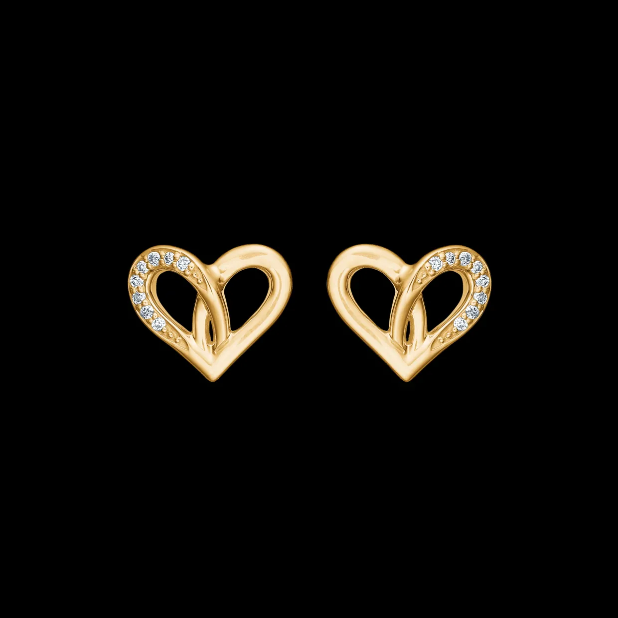 Øreringene er fremstillet i 14 karat guld og prydet med brillantslebne diamanter, der giver et luksuriøst og romantisk præg. Øreringene er formet som klassiske hjerter og de brillantslebne diamanter er omhyggeligt placeret for at fange lyset.