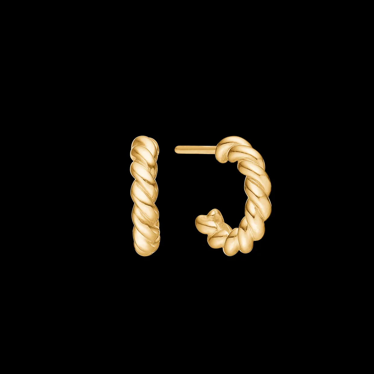 Creolen er på stik og i snoet 8 karat guld. Øreringene kan bruges til daglig men også festlig brug.
