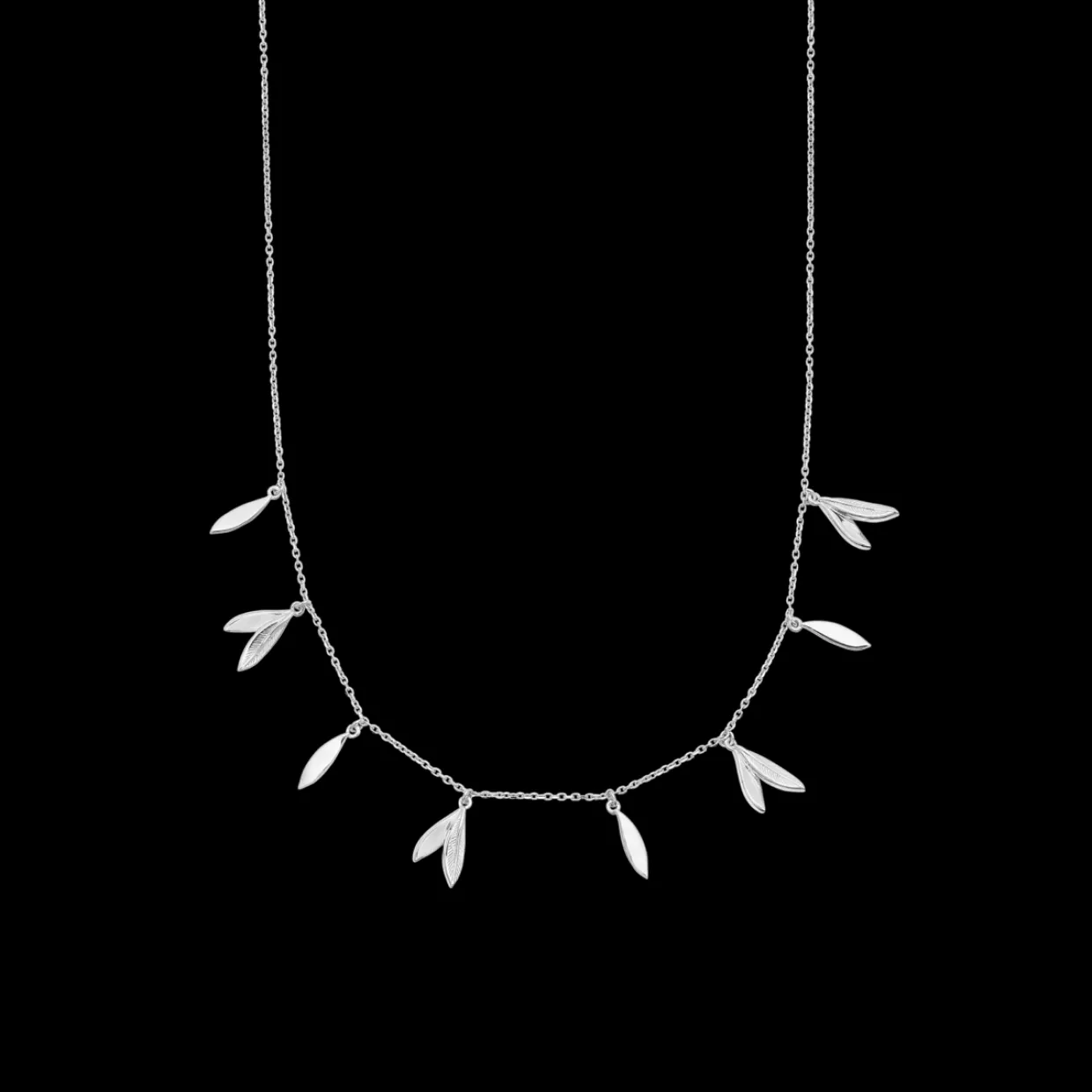 Flot sølv halskæde med små fjer som giver en flot bevægelse på halsen