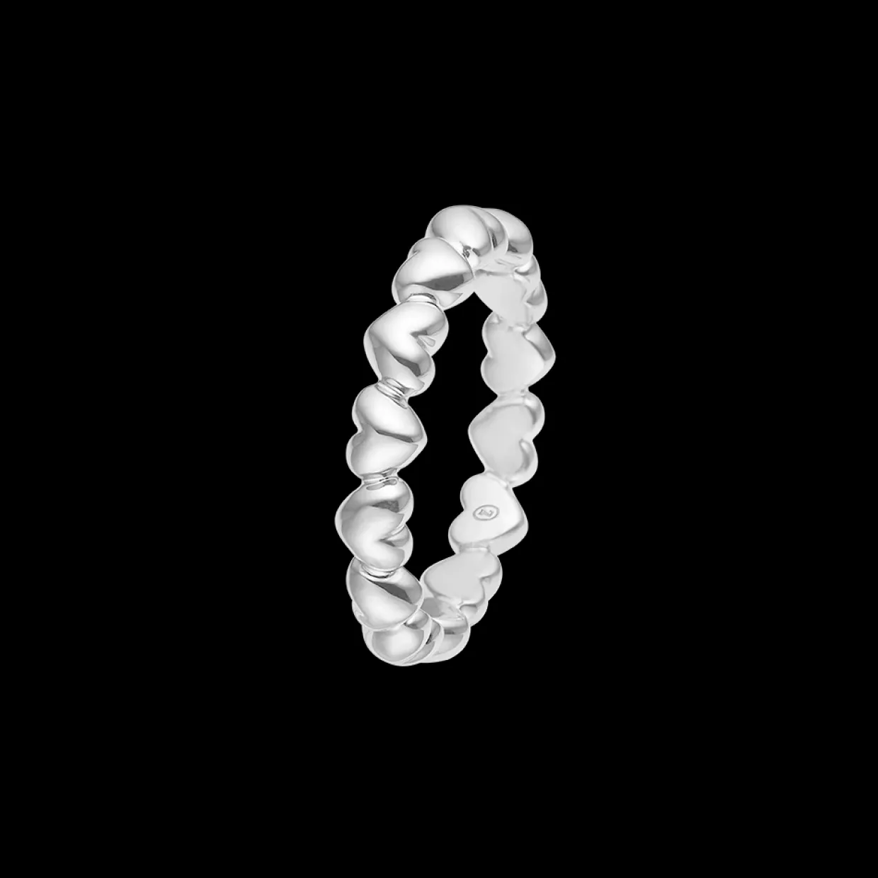 Smuk og meget klassisk sølv ring med hjerter hele vejen rundt, ringen kan bruges alene eller sammensættes med flere