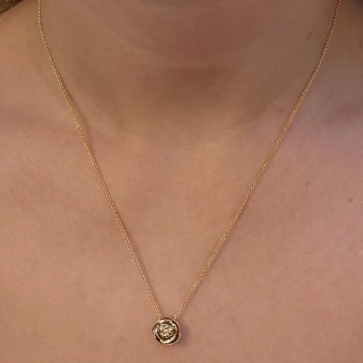 Halskæden er fremstillet 8 karats guld og udformet som en smuk Rose.