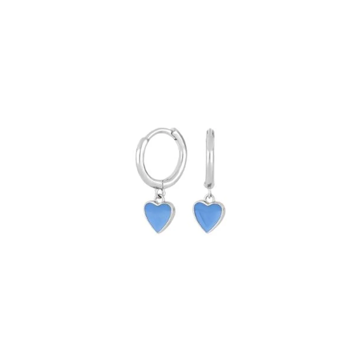 Flotte øreringe i 925 sterling sølv, med et hjerte i blå emalje. Øreringene er 6 mm, og passer derfor til både børn og voksne med mindre øre.