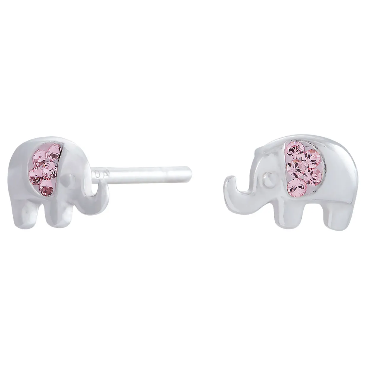 Nordahl Andersen børne ørering fra Noa Kids Jewellery. Øreringene er i sølv med elefant, hvor der i øret er sat 5 lyserøde syntiske zirkonia. Sølv øreringe har fået en rhodium overflade og måler 6 mm i bredden.