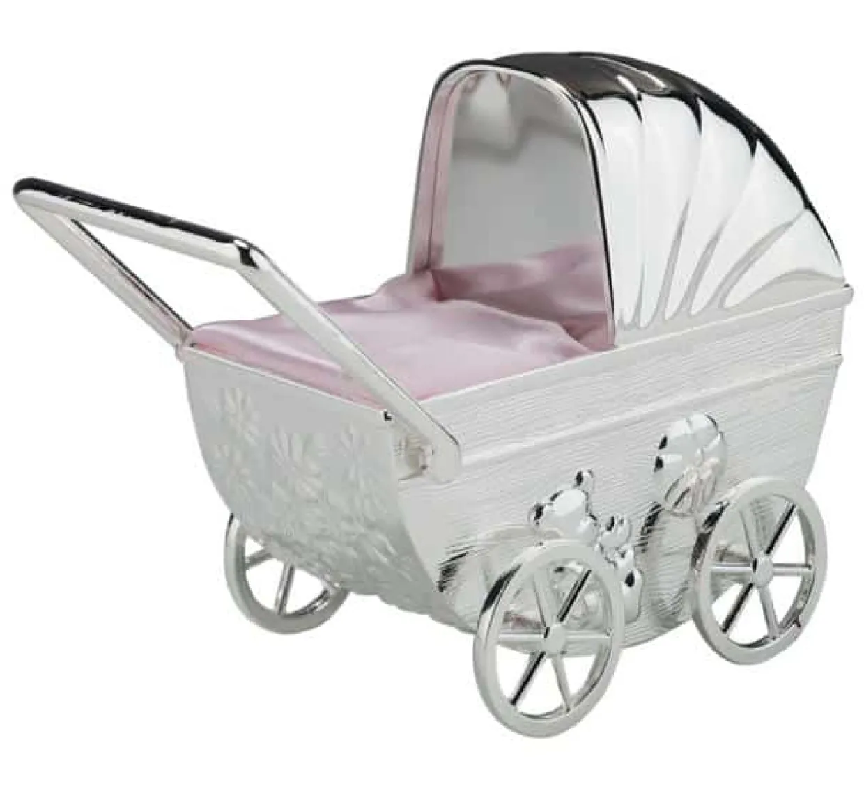 Dukkevognen har fået en forkromet overfladbehandling, så den holder sig blank og pænt igennem hele livet.
