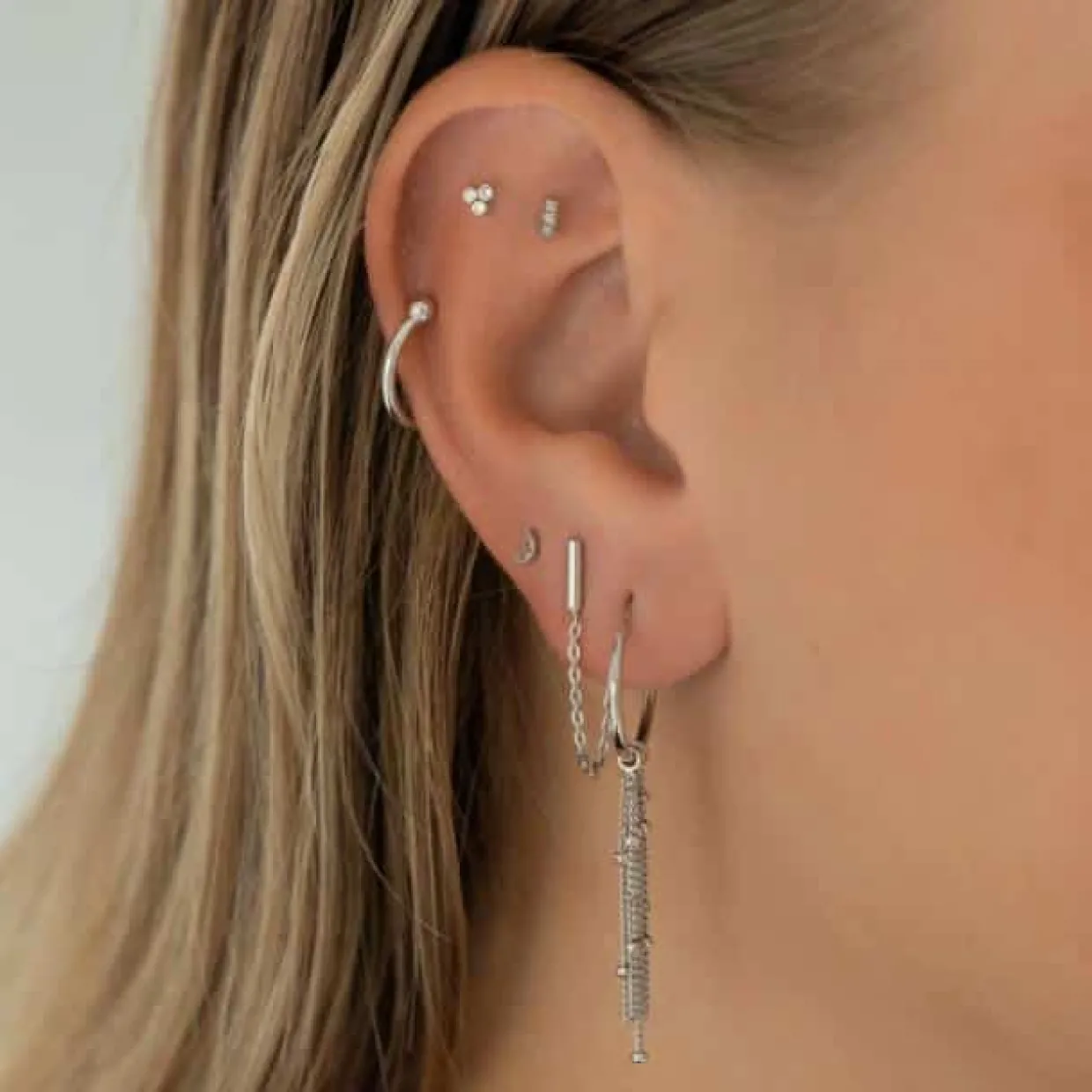 Øreringe creol lavet i 925 sterling sølv, øreringene har flere kæder hængende ned.