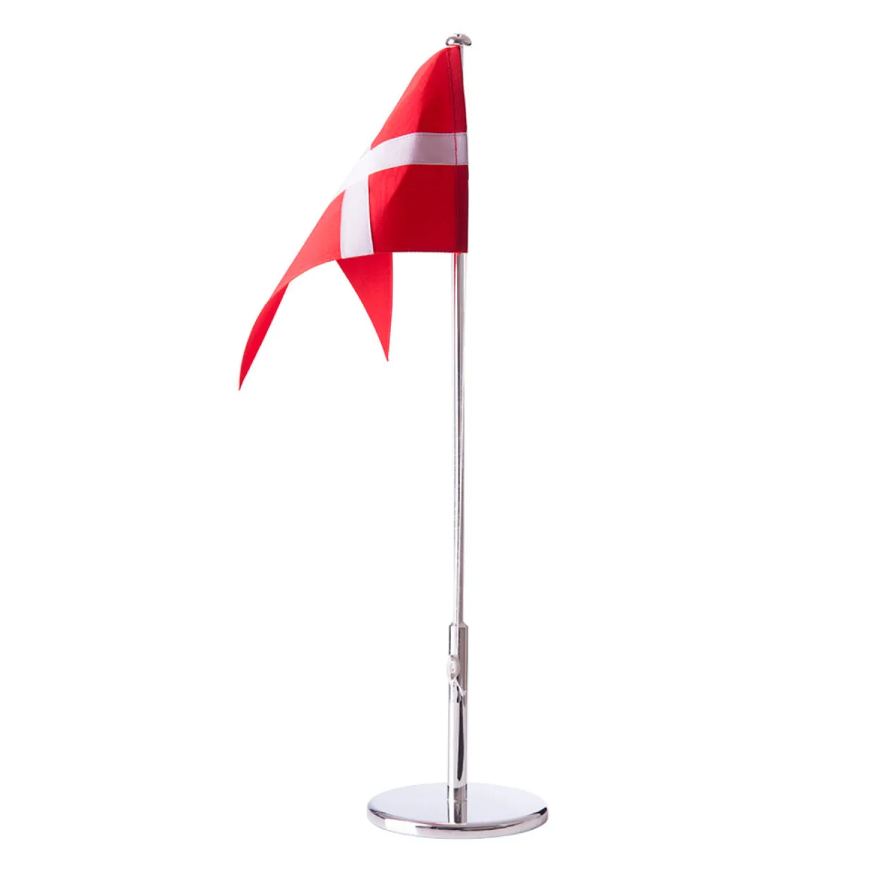 Flagstangen er forkromet og fremstår helt blank og klar til at graveres hvis man ønsker dette.