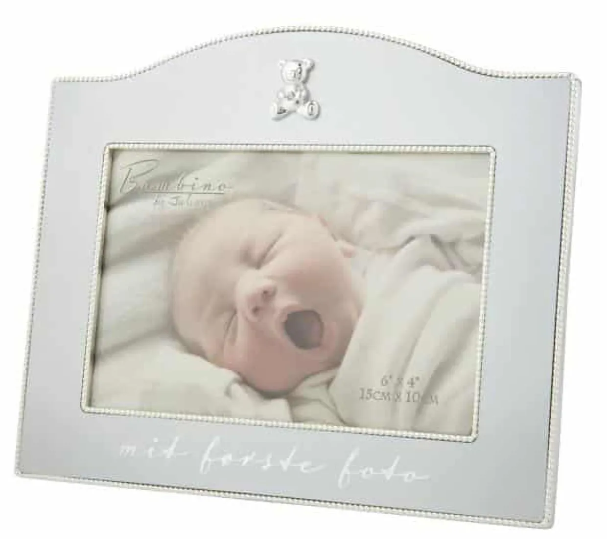 Den forsølvet fotoramme er beregnet til, at man sætter det første billede af sit barn i.