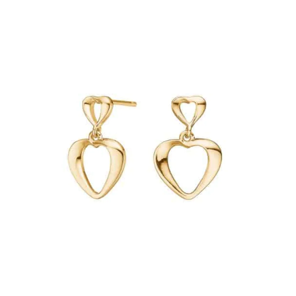 Øreringene er et par smukke øreringe i forgyldt sølv med et charmerende hjerteformet design. Øreringene kombinerer klassisk elegance med et moderne udtryk og tilføjer et sofistikeret og feminin touch til enhver stil. Deres varme, gyldne finish gør dem til et iøjnefaldende smykke, der passer perfekt til både hverdagsbrug og festlige anledninger.