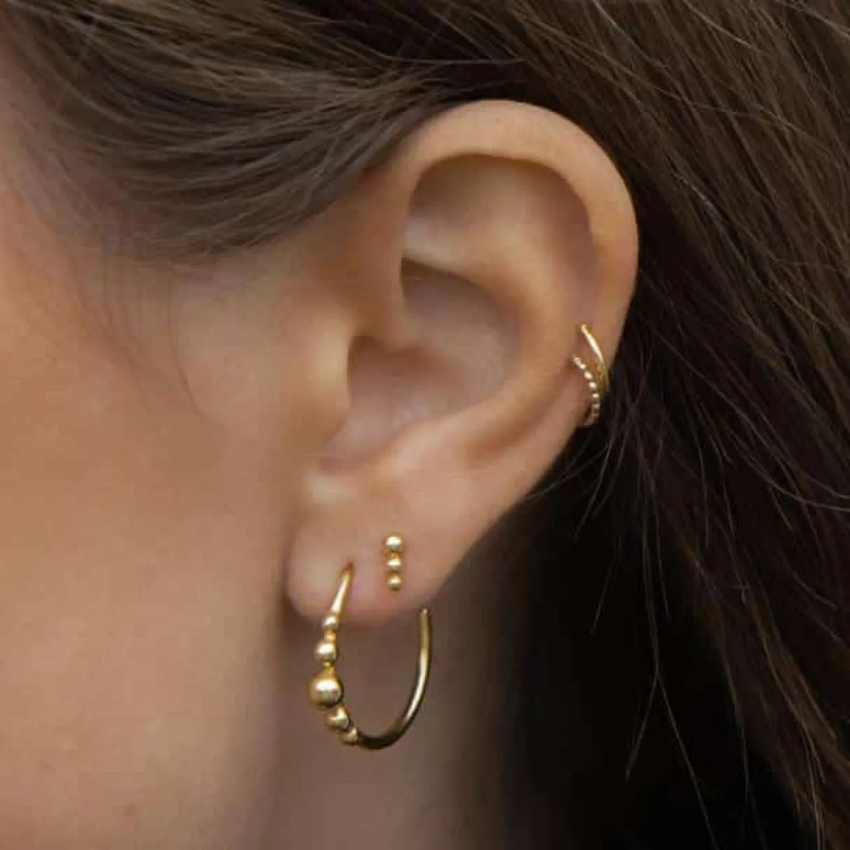 Disse simple ørestikker er fremstillet i sterling sølv og belagt med 18 karat rød guld. Ørestikken har tre små kugler på og den måler 5×2 mm. Ørestikken er fra brand serien ‘BEADIT52’ hvor der findes flere smykker med samme udtryk.