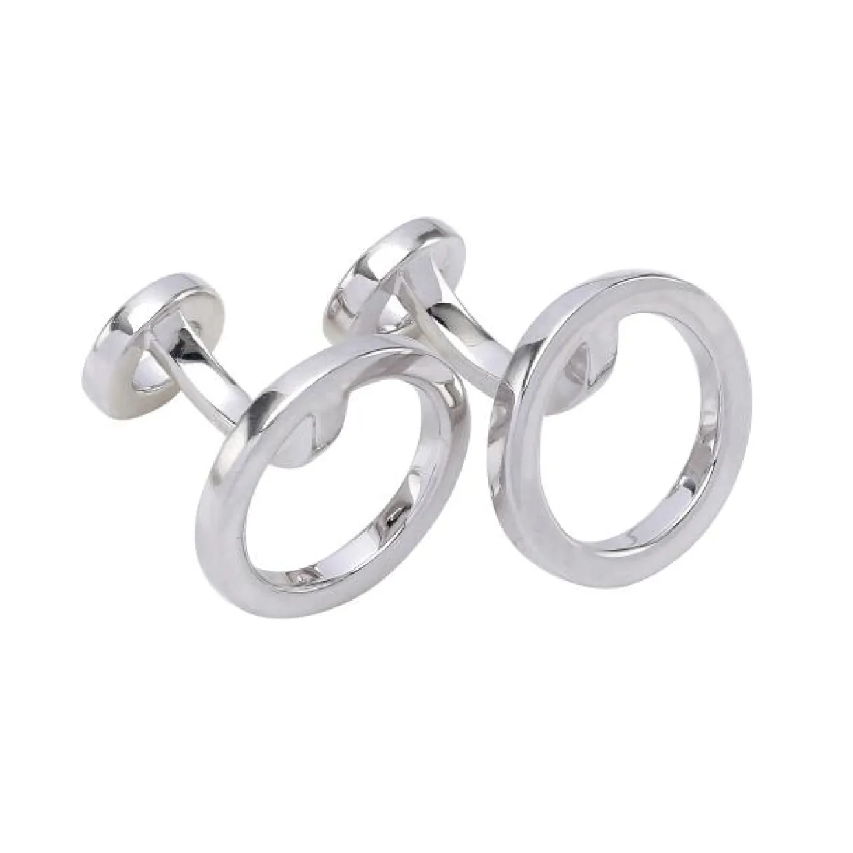Sølv herre manchetknapper med en rund åben cirkel. Manchetknapperne er med rhodineret overflade, så de holder sig pænere i længere tid. Cirklen måler 19 mm i diameter.