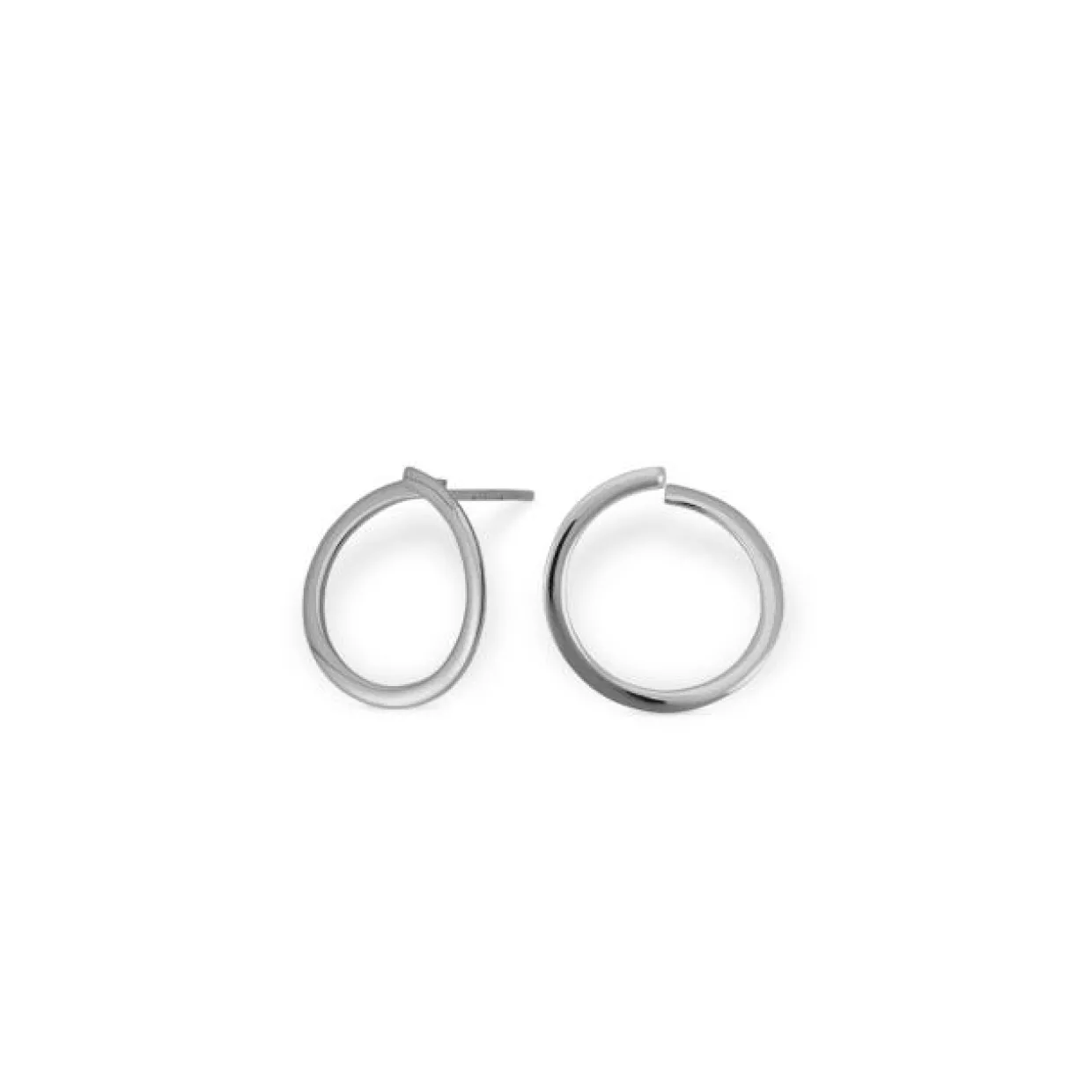Disse flotte øreringe er fremstillet i rhodium belagt sterling sølv. Øreringene er designet som ørestikkere og er formet som en åben cirkel. Cirklen måler 20 mm i diamater.