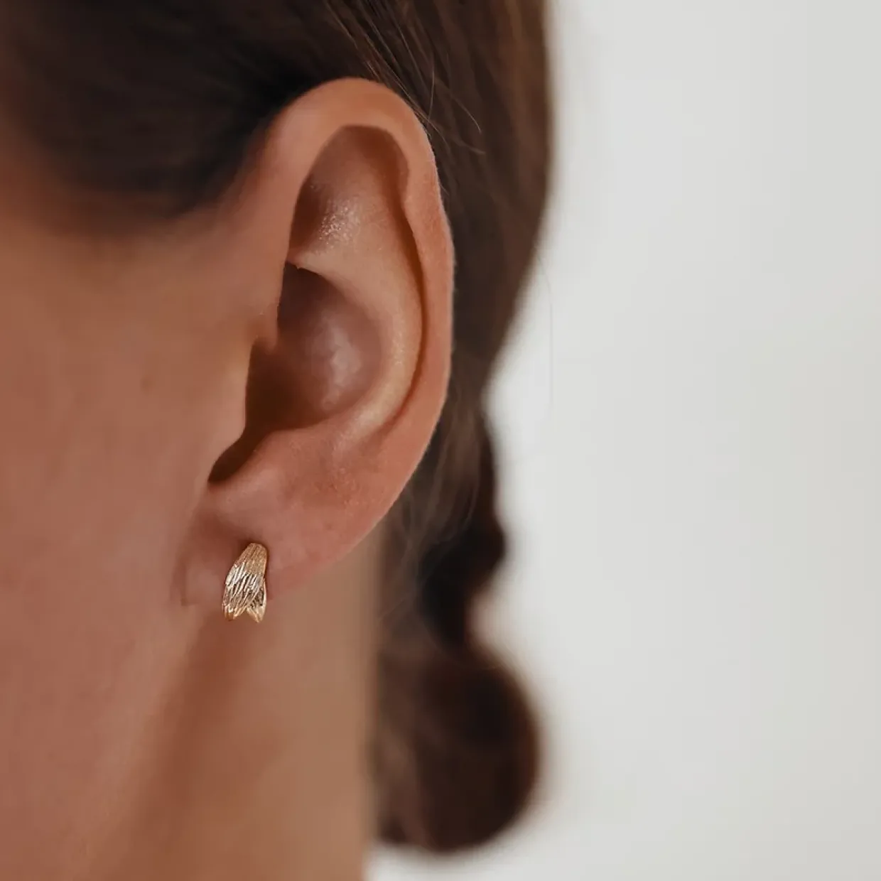 Per Borup har siden 1952 lavede håndlavede smykker, i høj kvalitet og tidsløse design. De elegante Daphne ørestikkere er lavet i 14 karat massivt guld. Øreringene er designet med en ru overflade og har en simpelt og stilet udtryk.
