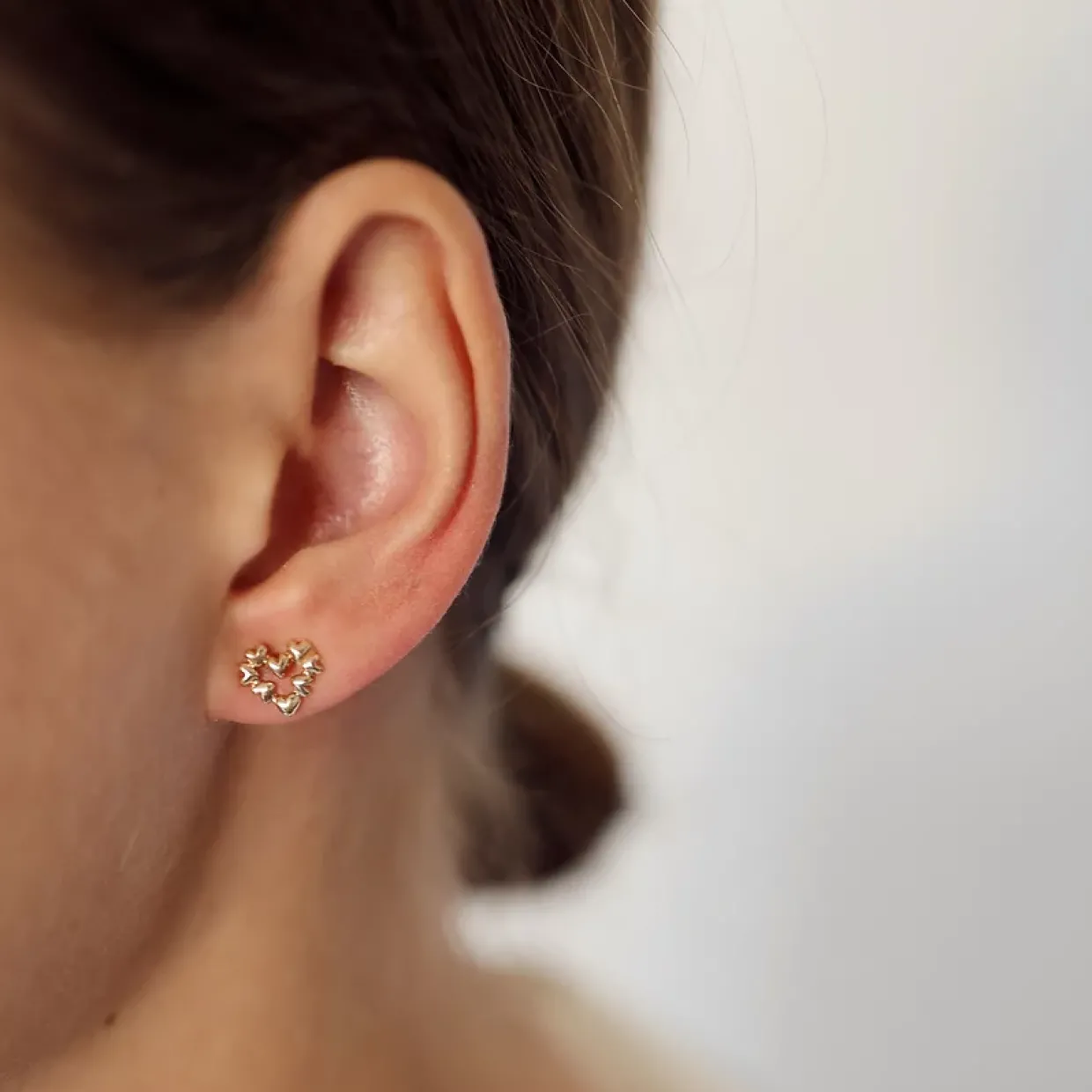 Per Borup har siden 1952 lavede håndlavede smykker, i høj kvalitet og tidsløse design. Øreringene fra HEARTS serien er fremstillet i 14 karat guld og lavet som ørestikkere, med små hjerter der tilsammen former et større hjerte.
