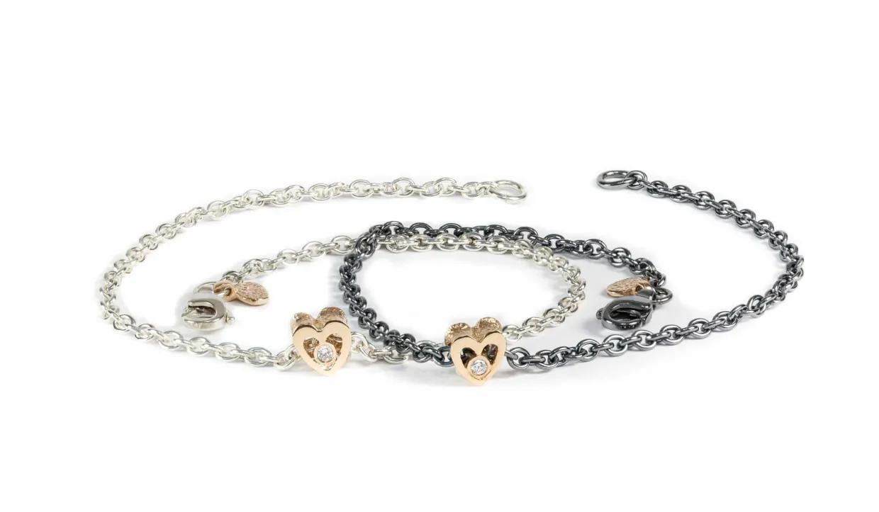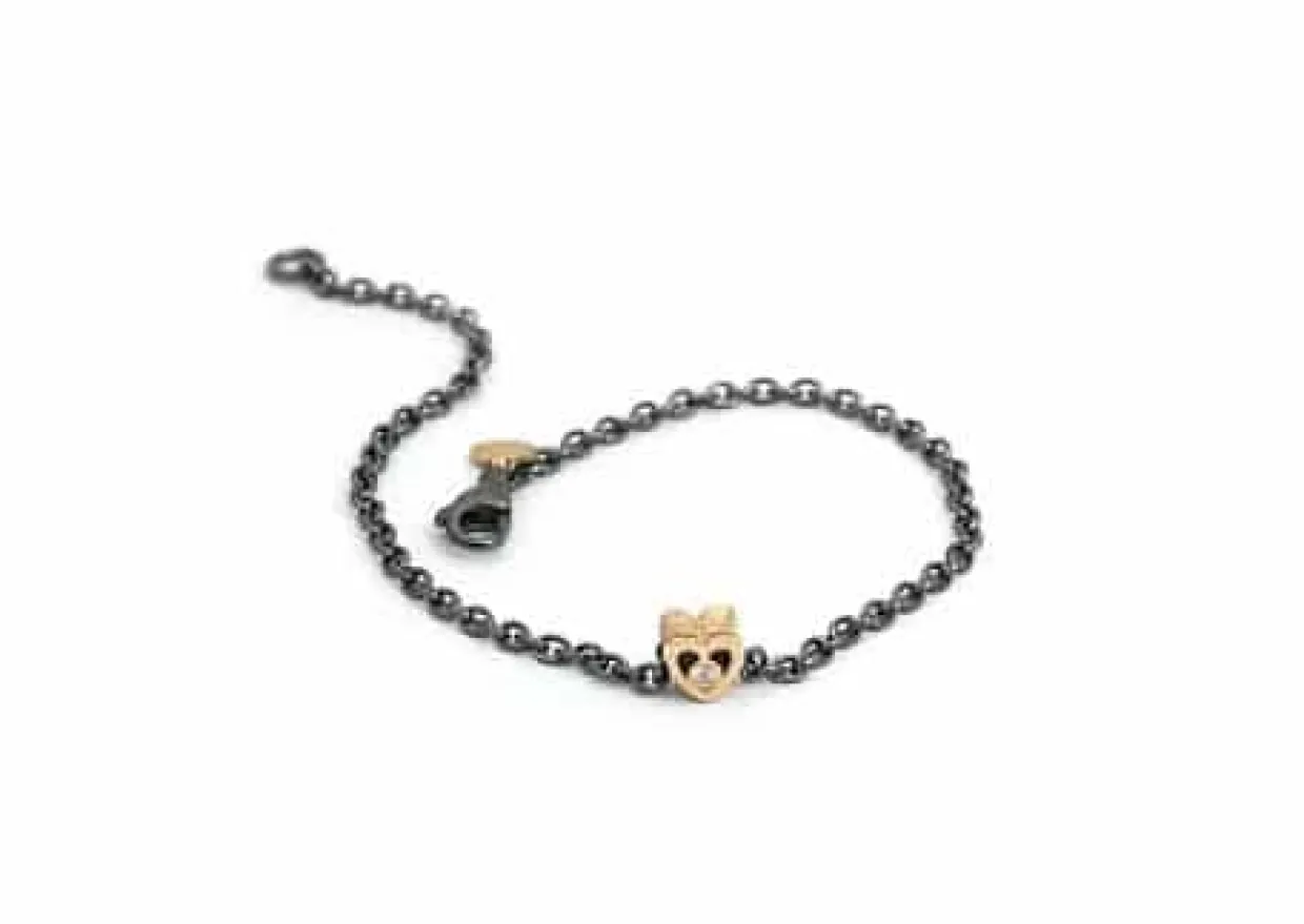 Armbåndet er i oxyderet 925 sterling sølv med et 14 karat guld hjerte.
