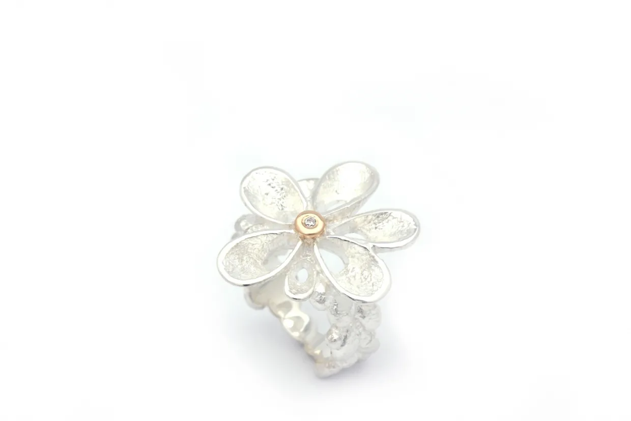 Sølv ring med brillant. Brillanten er på 0,02 carat i kvaliteten top wesselton/vs. Ringen findes og i en oxyderet udgave. Utrolig flot sølv ring.