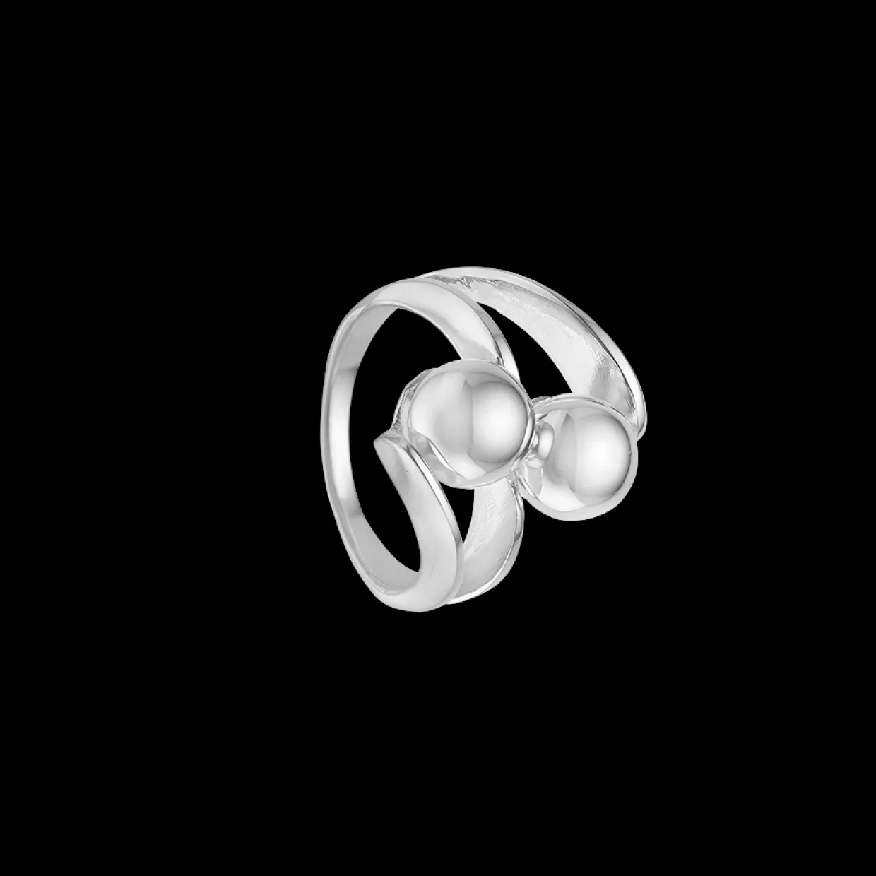 Flot sølv ring med kugler som giver en flot fylde på hånden