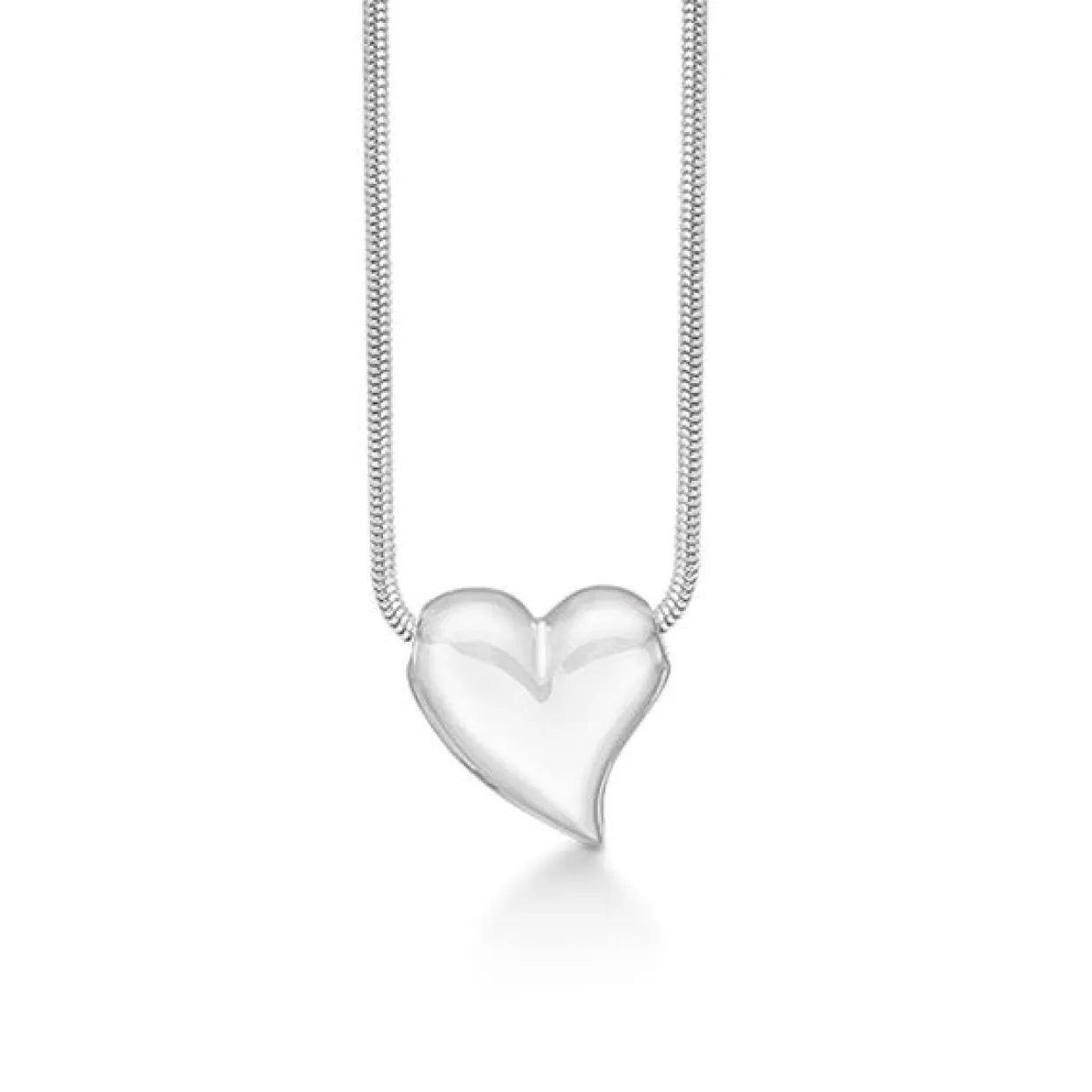 Et smukt blankt hjerte som sidder rundt om kæden så den sidder flot på halsen.