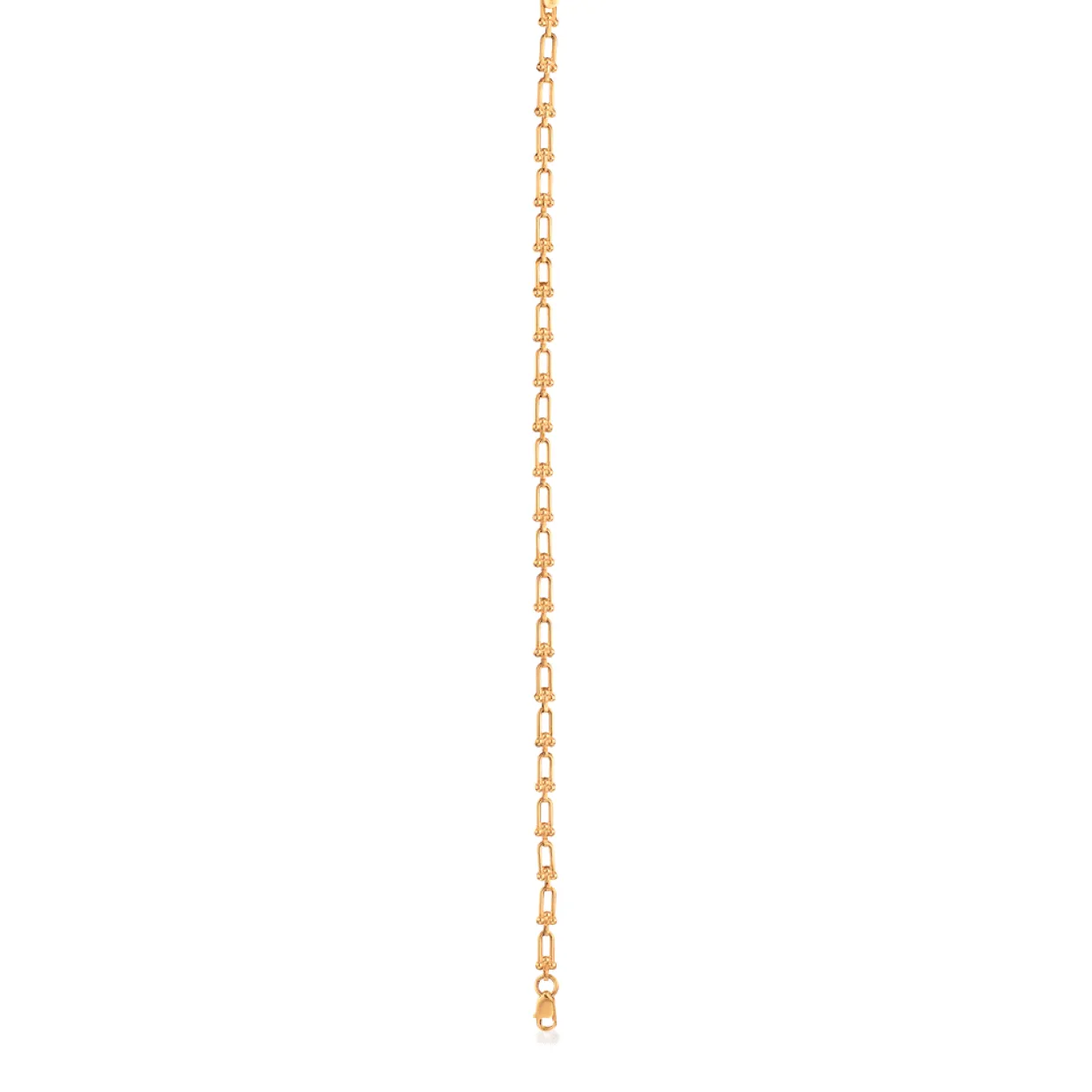 8 karat guld armbånd med led. Armbåndet er sat sammen med u-led, altså led der er u-formet. Til armbåndet findes der også en ring.