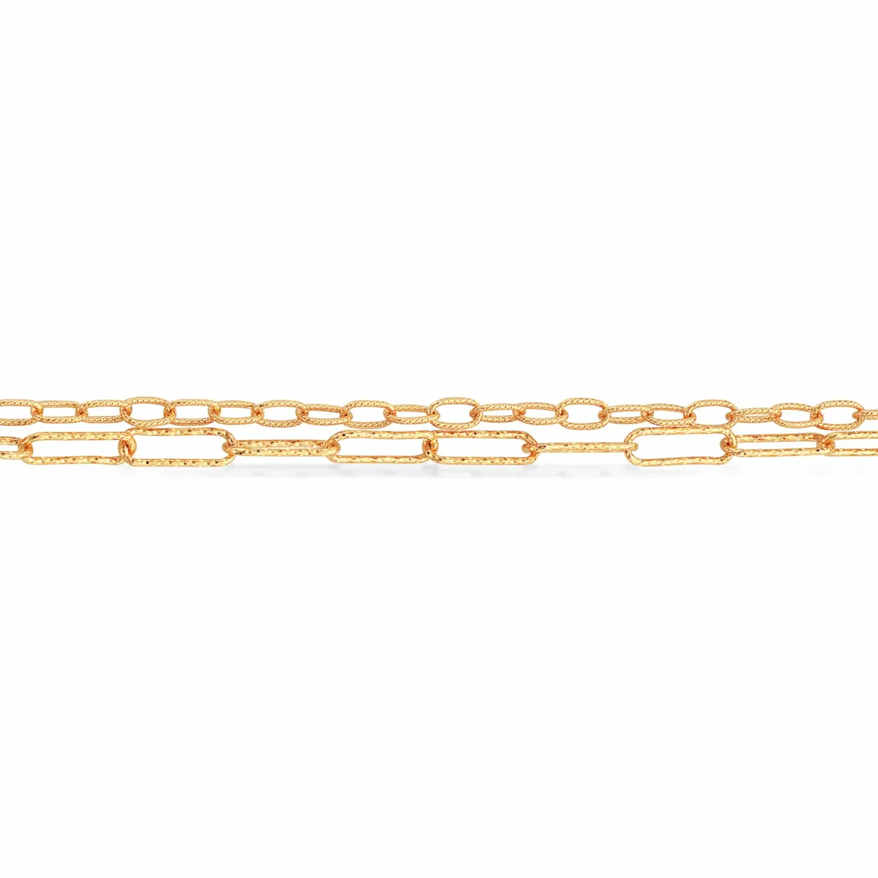 Flot armbånd i guldbelagt sterling sølv som har struktur i overfladen. Armbåndet er designet som to rækker lænker som sidder sammen i samme lås, og måler 17 cm i længden.