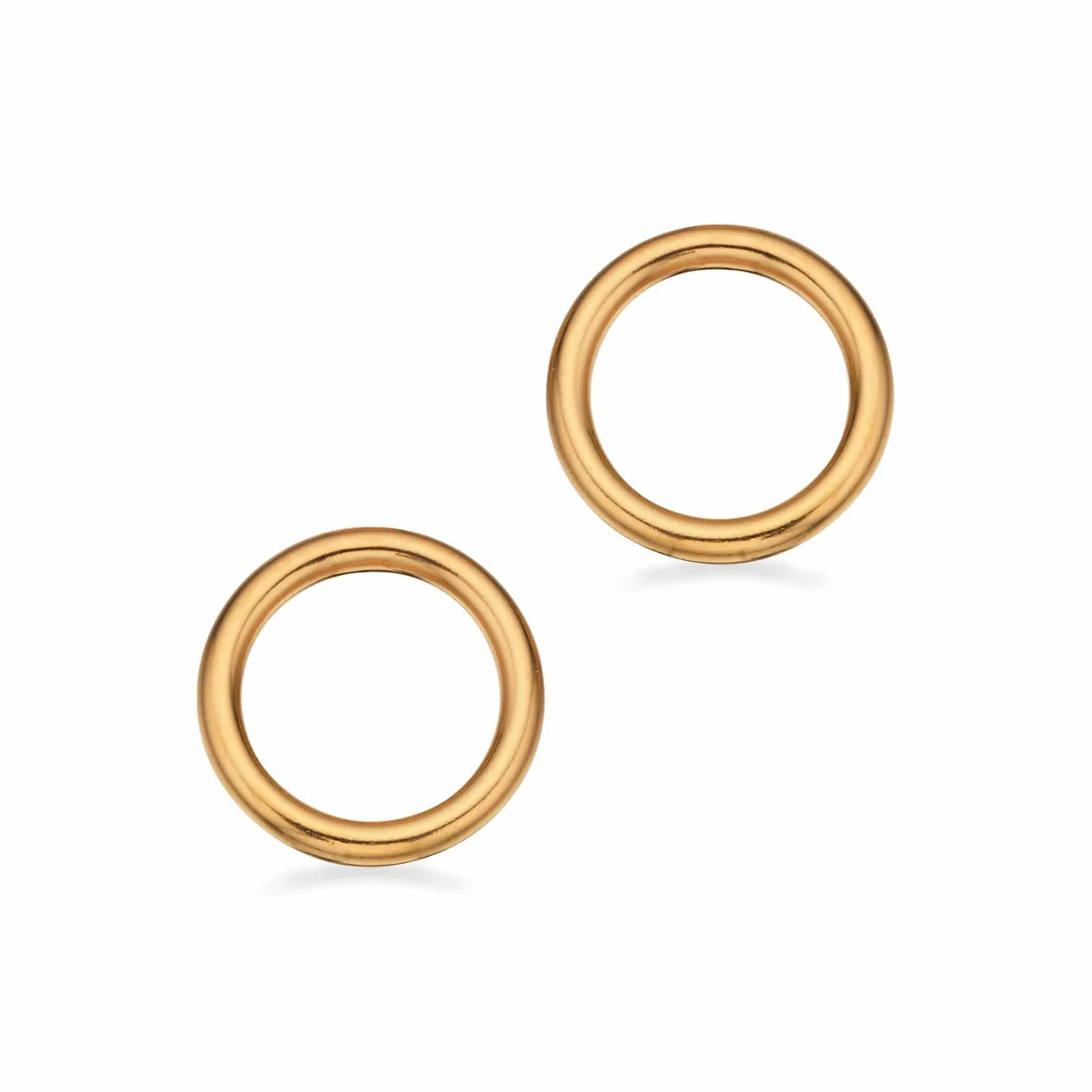 Scrouples sølv forgyldt øreringe på stik med cirkel. Øreringene har en diameter på 11 mm. Stikken sidder i selve ringen der omformer cirklen, så de fylder hele øret og giver et flot udtryk.