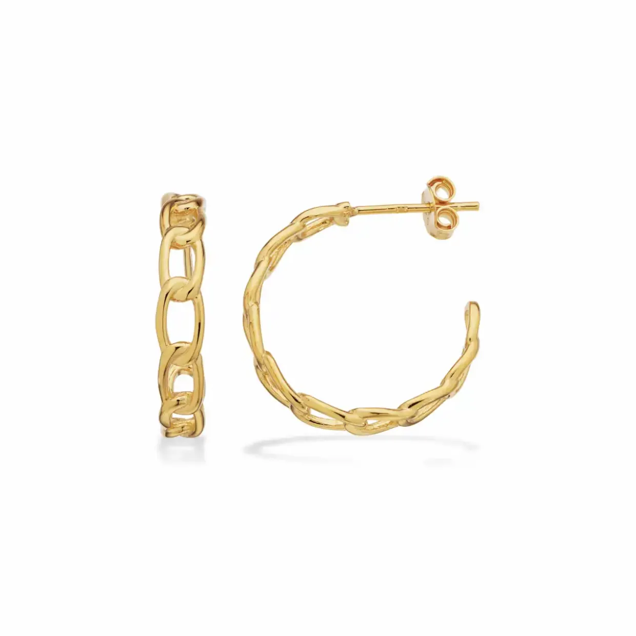 Halv creoler fra scrouples lavet i forgyldt 925 sterling sølv, modellen her hedder links og er designet som faste kæder i en halv creol – links -. Super søde til et summer look.