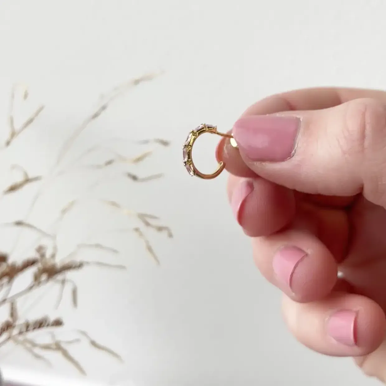 Øreringene er designet med smukke fem smukke rosa/lyserøde zirkonia isat i hver creol.