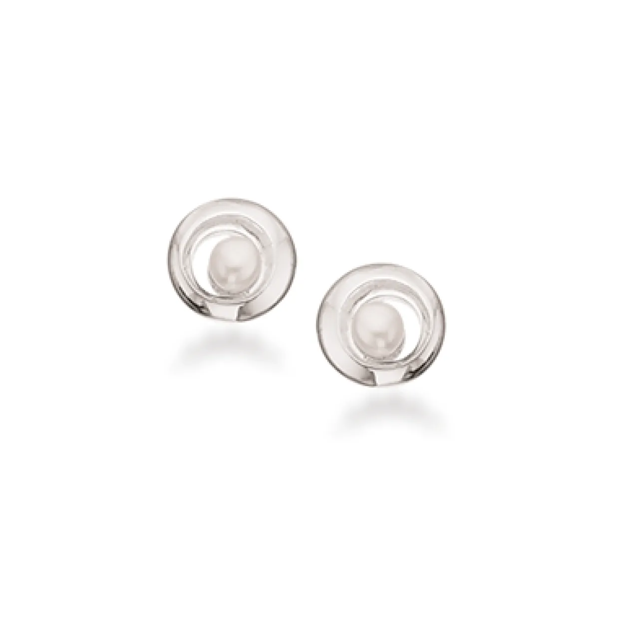 Disse elegante ørestikker er fremstillet i sterling sølv og er blanke og smukke i overfladen. Ørestikkerne er designet med åbne cirkler, hvor der er sat en hvid ferskvands perle i hver ørering.