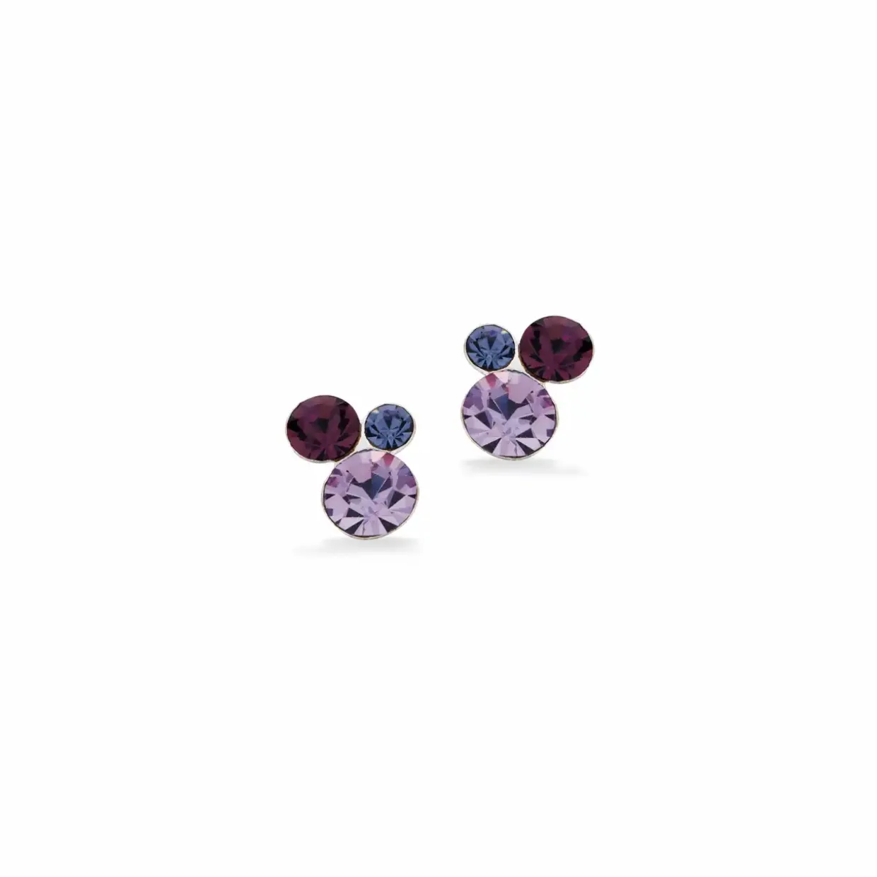 Flotte øreringe lavet i 925 sterling sølv, med tre flotte zirkonia i farverne Lilla, Blå og Rød.