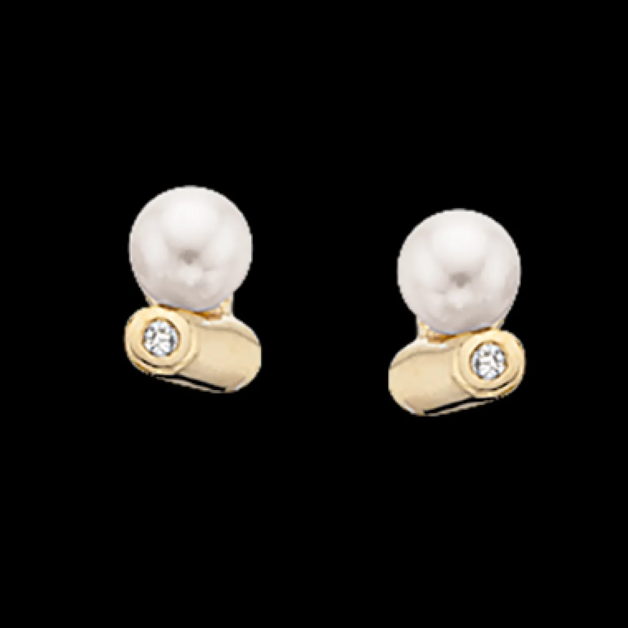 Scrouples 14 karat guld øreringe stikker med brillant 0,03 carat wesselton si plus ferskvands kultur perle. Perle ørestikker er utrolig flotte og med brillanten sætter man lige prikken over i’et. Brillanten sætter i en rørfatning, så den er godt beskyttet.