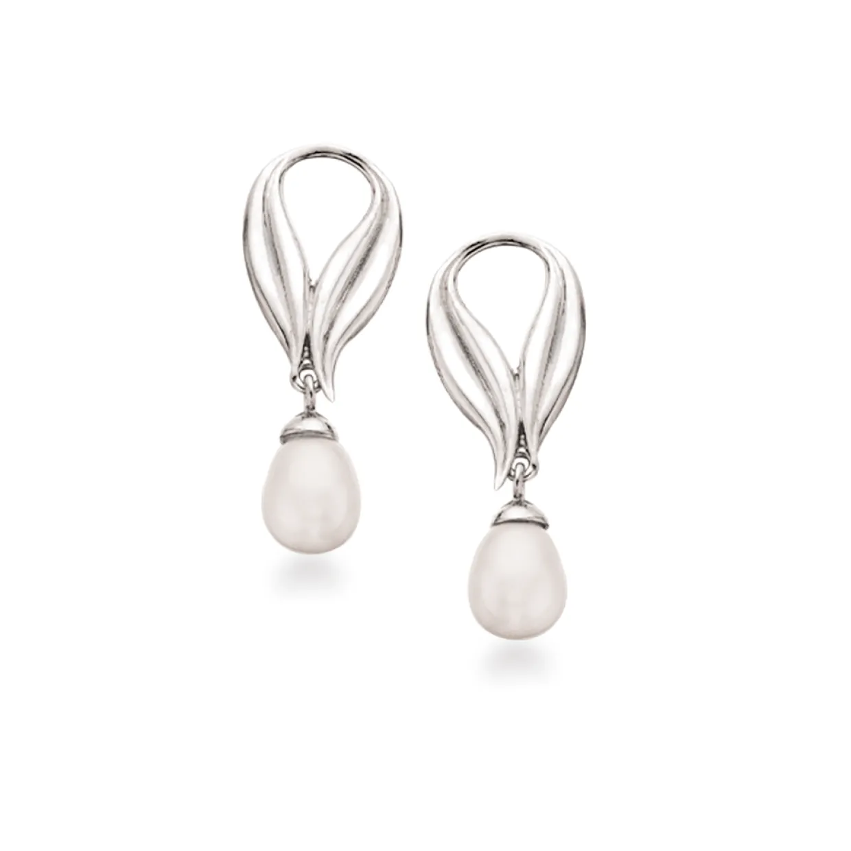 Sølv ørehænger med ferskvands kultur perle. Ørehængerne er fra serie PRIMAVERA hvor der også findes halskæde og ring til. Ørehængerne er på stik, hvor perle vedhænget sidder løst.