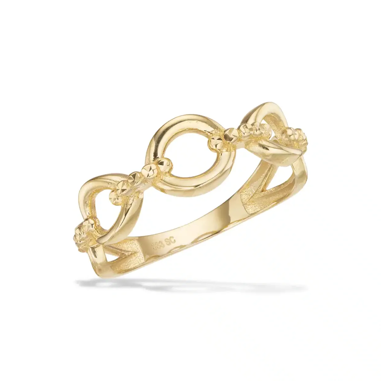 Denne smukke 8 karats guld ring fra Scrouples, er designet med fem cirkler forbundet med kørner.