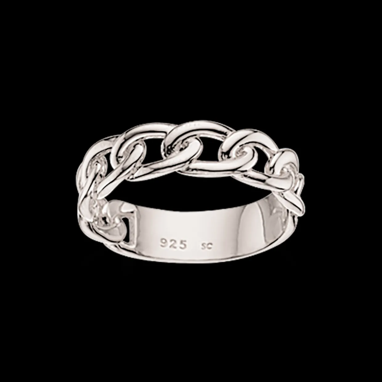 Dame ring i massiv sterling sølv med mønster panser som man kender fra armbånd og halskæde. Flot ring uden sten som kan bruges til enhver lejlighed. Ringen kan laves så den også kan sættes på langefingeren.