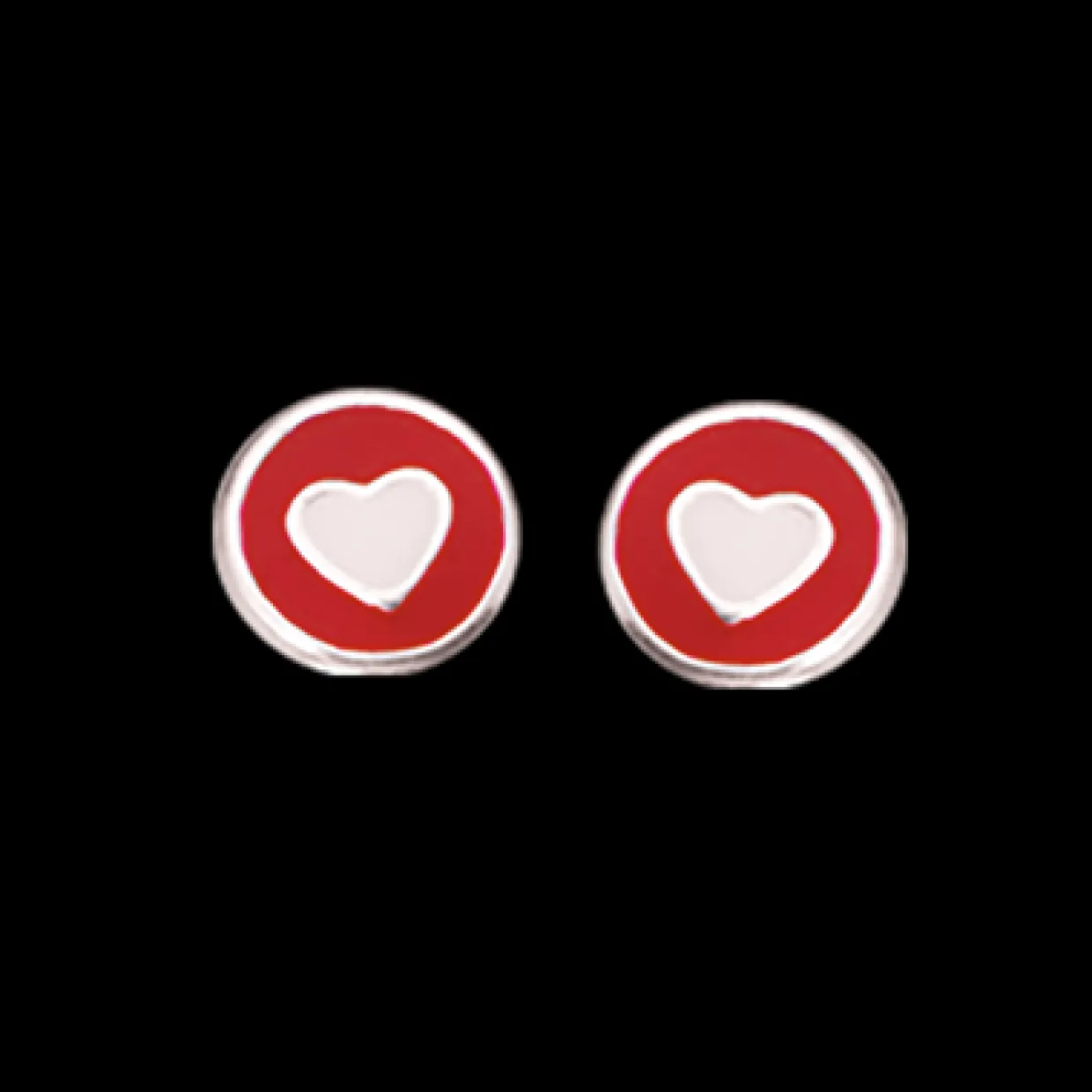 Super søde børne øreringe med rød emalje og et lille hjerte