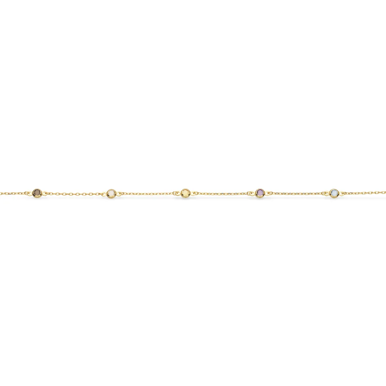 De funklende multicolor-sten tilfører armbåndet et livligt og moderne udtryk. Med sin justerbare længde på 17+2 cm sidder armbåndet behageligt om håndleddet og giver mulighed for at tilpasse pasformen.