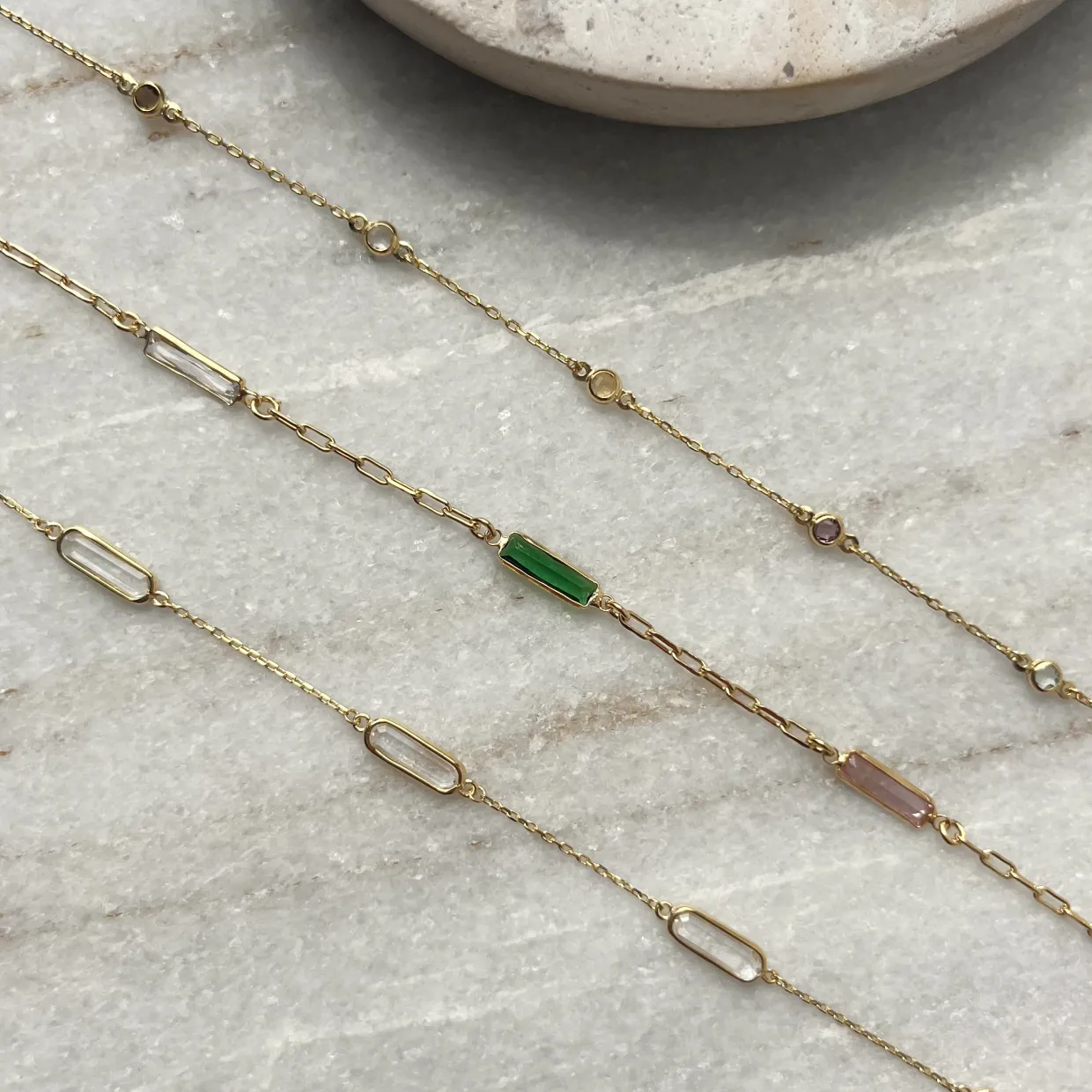 Det elegante Soho-armbånd fra Scrouples er et smykke, der forener klassisk elegance med et legende og farverigt twist. Udført i sterlingsølv og belagt med 18 kt. forgyldning får armbåndet en varm gylden glød.