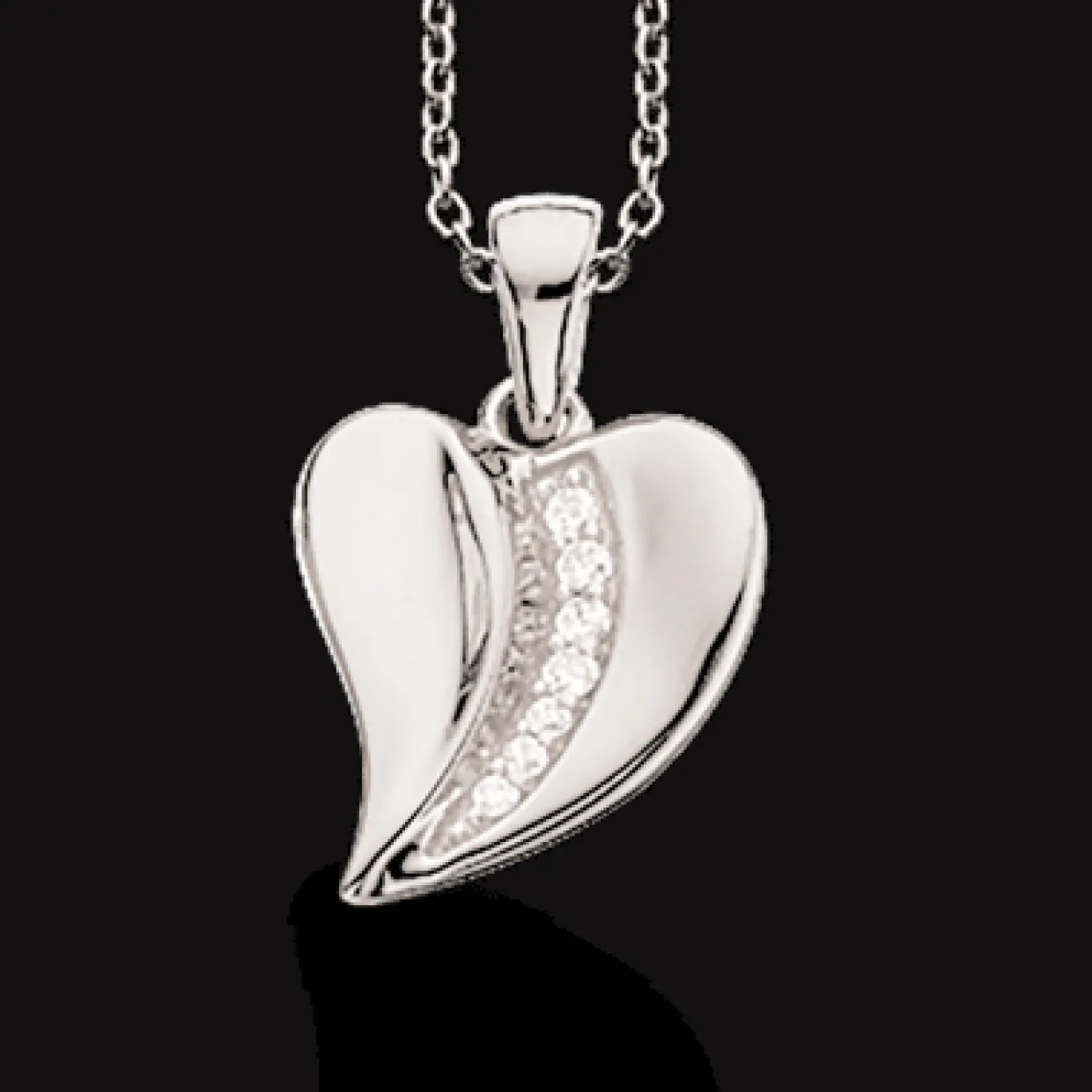 Vedhænget er fremstillet i sterling sølv og er blankt i overfladen. Vedhænget er i sat kubiske zirkonia og er formet som et hjerte.